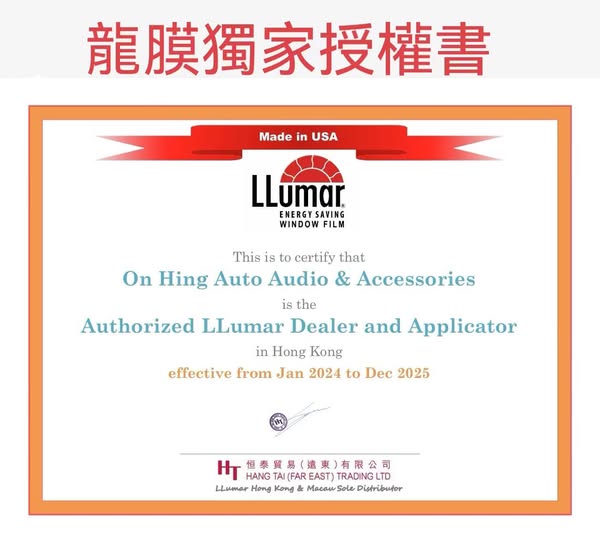 搜索关键词 LLumar car film, car window tinting, UV protection film, heat insulation, car accessories, authorized dealer, Hong Kong car service, vehicle inspection, 安興音響, 安興龍膜优势 High heat insulation,UV protection,Authorized dealer,Free certificate application