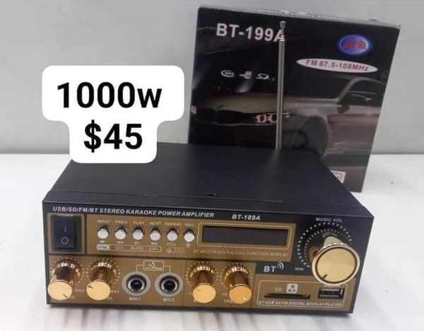 搜索关键词 audio amplifier, car audio, home audio, bluetooth amplifier, fm radio, usb player, micro sd player, 1000w amplifier, 1200w amplifier, guatemala shipping优势 2 Salidas,Bluetooth,Radio FM,Lector de Memoria USB,Lector de Micro SD,Puerto para Microfono,1000W / 1200W,110V / 12V
