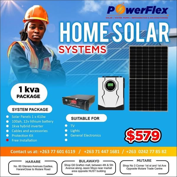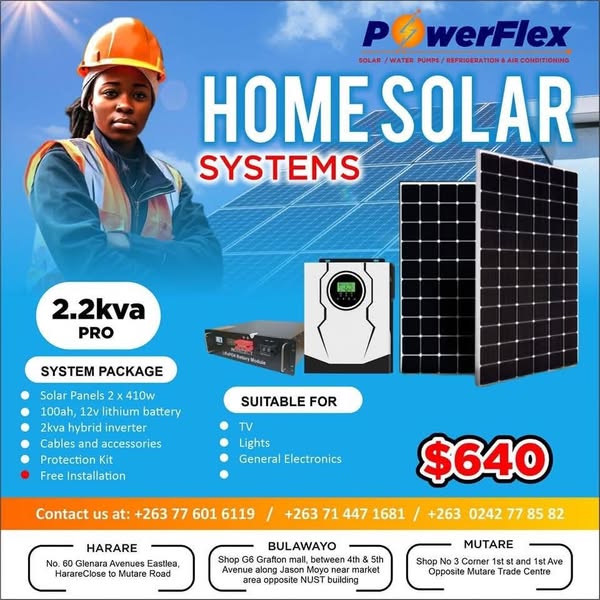 搜索关键词 solar systems Zimbabwe, affordable solar power, powerflex promotion, green energy solutions, home solar systems, office solar systems, lithium battery solar, hybrid inverter systems, cash on delivery, reliable solar energy优势 Affordable pricing,Reliable performance,Delivery service and cash on delivery,Warranty offered,Lighting resistance,Hybrid inverters