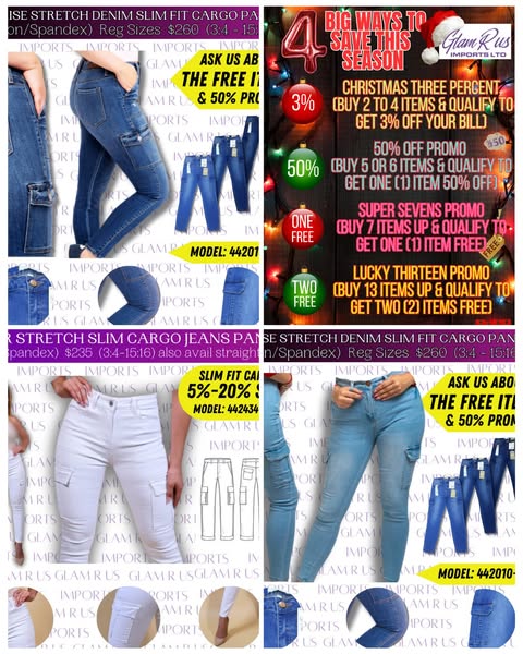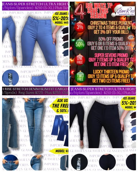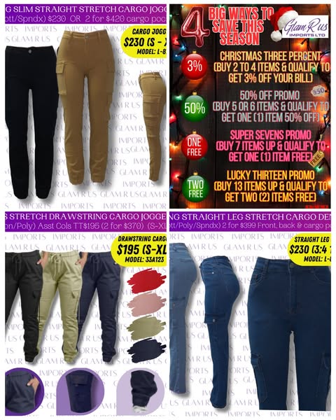 Ladies Jeans! Cargo Jeans! Bell Bottom! Stretch Jeans! High Waist! All Fits! New Apparel Arrivals! Regular & PLUS SIZES! Get all your Trending Apparel & Amazing deals on everything you need for the Holidays & Carnival.