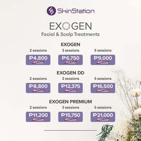 搜索关键词 exogen facial, exogen scalp treatment, skin rejuvenation, hair loss treatment, exosomes therapy, skinstation philippines, mid year sale, anti aging, rmda-s serum, cosmetic services优势 Up to 40% off,Skin & scalp revitalization,Uses Exosomes for deep hydration & renewal,Targets hair loss,Non-invasive and relaxing