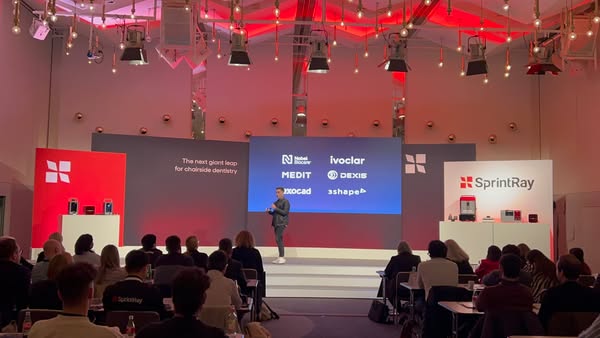 ร่วมถ่ายรูปกับ 2 ผู้ก่อตั้งและกรรมการบริหาร บริษัท SprintRay USA ในงานเปิดตัว Midas (Digital Press Stereolithography) และ Pro2 3D Printer Solution (New Model 2025) - IDS Germany