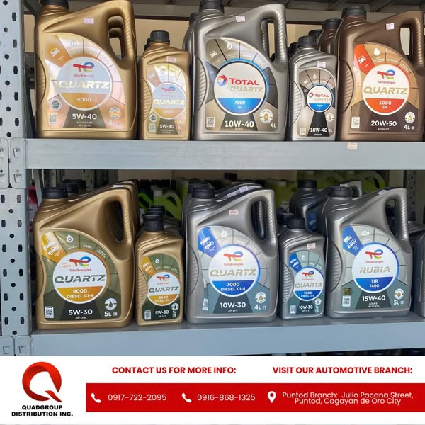 Nangita ba ka og automotive essentials para sa imong makina? Available na sa Quadgroup Automotives ang high-quality engine oils, lubricants, coolants, ug daghan pa! 🛢️💯 Sigurado sa performance ug proteksyon! Bisitaha na karon!