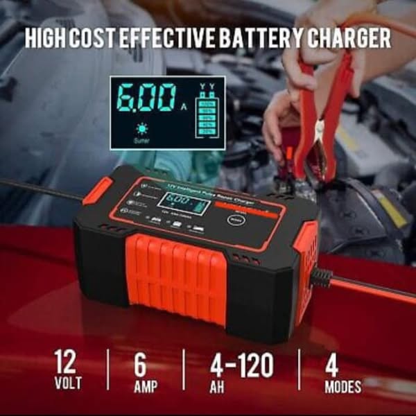 Package Included: 1x Car Battery Charger Features: - Different charge for temperature detection in winter and summer, the microcomputer automatically recognizes the ambient temperature and gives you theappropriate charging voltage for the battery according to the season.Fully charged in winter,overcharged in summer, extending battery life. - The operation is simple and two steps are enough, connect the battery and plug it in (select the right mode), and itwill charge automatically, which is super easy to operate - One-click repair battery, use high-frequency and low-frequency pulse technology to solve battery shortage, charging, large internal resistance and other problems, and make your battery look new. - Precisely switch touch keys, newly designed buttons, refuse to freeze. - Multiple cars/start-stop/motorcycle/maintenance, one-button switch: start-stop battery/normal battery, dual-mode battery charging, no battery damage - Universal 12V wide range, Suitable For 12V Lead-Acid Battery/Start-Stop Battery/Dry Water Battery (Lithium Battery Is Prohibited) - Not only can charge but also detect the battery, intelligent digital display, which can display power, voltage and temperature. - The quality of creative works comes first, Using pure copper soft core wire, fully wrapped high-conductivityalligator clip, cold and frost-resistant, safe. Specifications: - Color: Green, Blue, Red, Yellow(Optional) - Plug: UK Plug, EU Plug, US Plug, CN Plug - Output line length: 65cm/25.6'' - Input line length: 90cm/35.4'' - VI: AC110-220V (50-60HZ) - OV: DC 6A --- (MAX) - VO: DC13.8-15.5V - Application:12V 2Ah-100Ah - Demension: 150x62x85mm/5.9x3.4x2.4'' - Universal uses: Suitable For 12V Lead-Acid Battery/Start-Stop Battery/Dry Water Battery (Lithium Battery Is Prohibited).