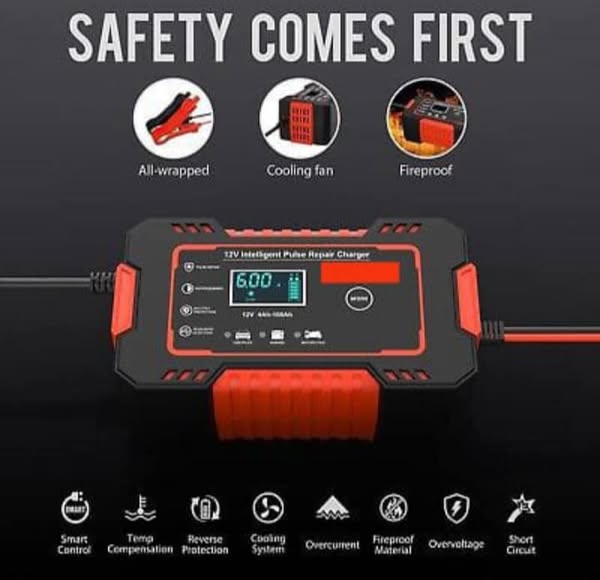 搜索关键词 car battery charger, 12v charger, battery repair, automotive battery, lead acid battery, battery maintainence, battery charge优势 Winter/Summer temperature detection,One-click battery repair,Multiple battery types supported,Intelligent digital display,Safety features (copper core wire, insulated clip)