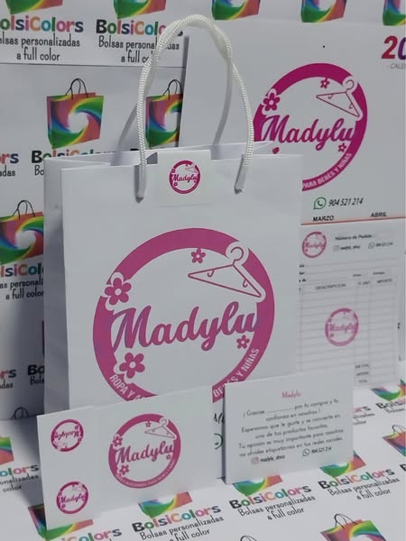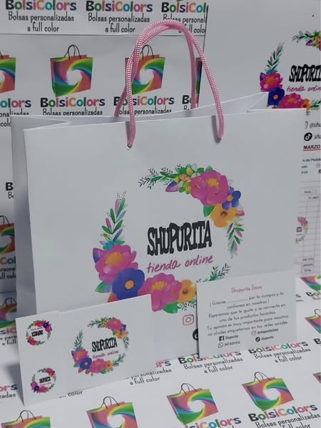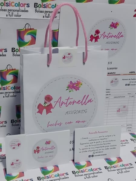 Bolsas de papel blanco y papel liner, todo PERSONALIZADO con tu LOGO y REDES a FULL COLOR