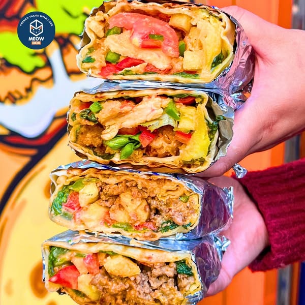 搜索关键词 meow box tacos, tacos promotion, vietnam food, fast food deals, popcorn chicken, Hanoi restaurant, food combo deal, taco restaurant, cheap tacos, student discount优势 Giant tacos at affordable price,Free popcorn chicken with combo,Variety of toppings,Available for dine-in, takeaway, and delivery,Buy 1 get 1 free offer,Discount on Google Map checkin