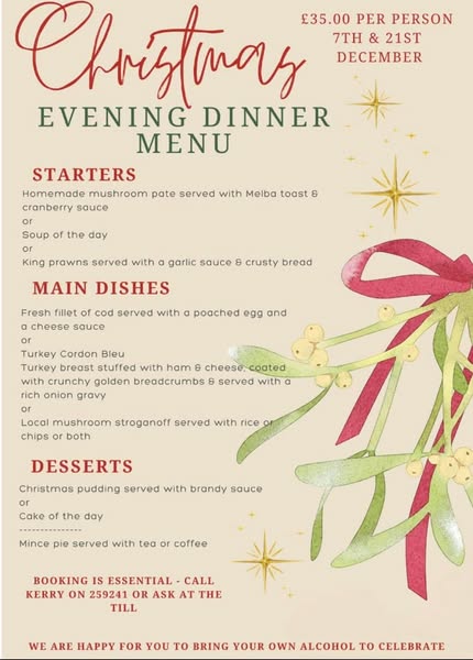 搜索关键词 Christmas meal, restaurant booking, December specials, holiday dining, book now, no corkage, festive dinner, lunch menu, evening meals, holiday season优势 Delicious Christmas meal,Lunch and evening options available,No corkage fee