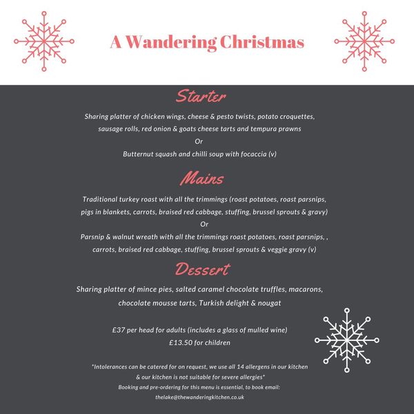 Please book by email: thelake@thewanderingkitchen.co.uk