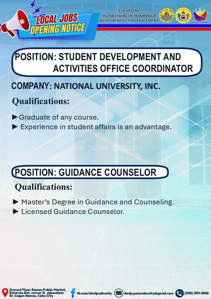 搜索关键词 job fair, cebu jobs, job vacancies, local job fair, SM Seaside City, hiring event, career opportunities, philippines jobs, mega job fair, immediate hiring优势 Multiple employers in one location,Various job vacancies,Opportunity for on-the-spot interviews