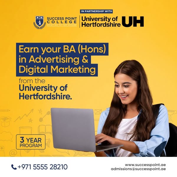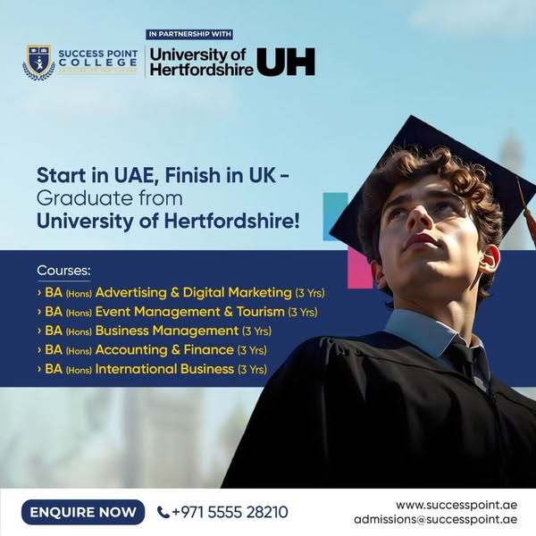 Experience world-class UK education right here in the UAE with a 3-year Bachelor’s degree program designed for your success. ✅ Modern classrooms with advanced learning tools ✅ Expert faculty with real-world industry experience ✅ Affordable tuition with flexible payment options ✅ Multiple specializations available ✅ Option to transfer to the UK 🎓 Get a globally recognized degree without the high costs. 📞 Call now: +971 555 528210 — Limited seats available!