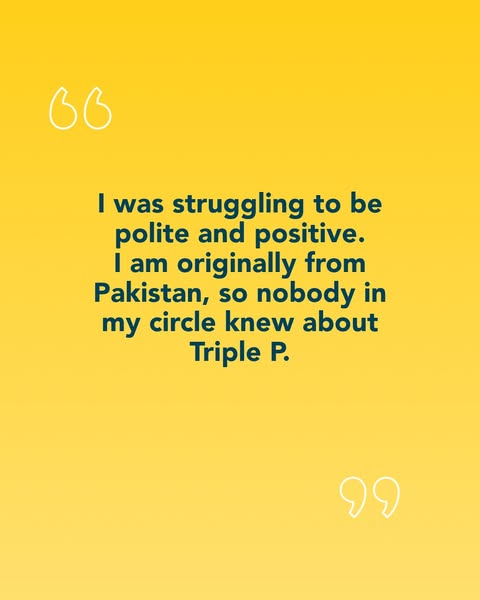 “I am originally from Pakistan, so nobody in my circle knew about Triple P.”
