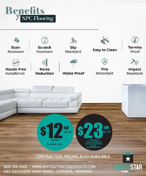 #SPCFlooring #FlooringDeals #BestPriceGuaranteed #WaterproofFloors #ScratchResistant #TermiteProof #SlipResistant #HomeUpgrade #TrinidadHomes #ShopOnline #CunupiaDeals