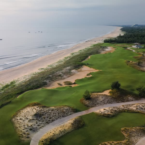 Golden Sand Resort Golf Club — a world-class 18-hole championship course that winds through rolling dunes and coastal vegetation, showcasing stunning East Sea views.