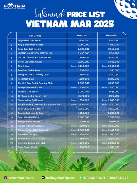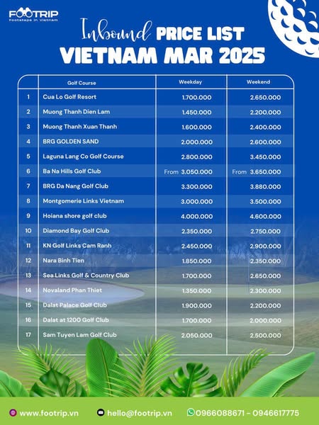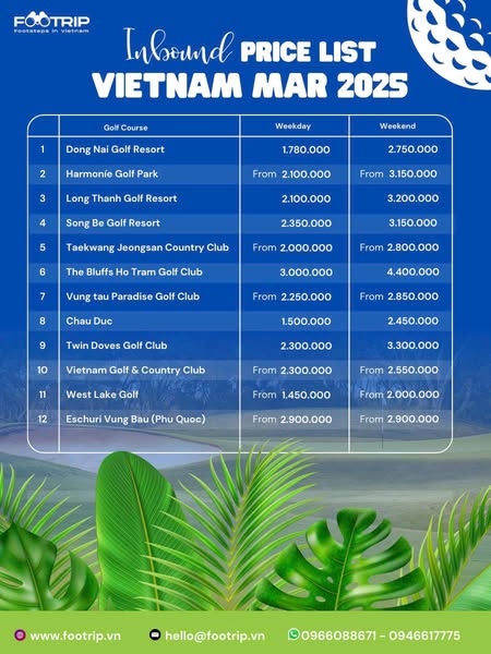 搜索关键词 Vietnam Golf, Golf Tours, Vietnam Travel, Golf Packages, Tee Time Vietnam, Footrip Golf, Vietnam Golf Courses, Golfing Holidays, Vietnam Vacation, Southeast Asia Golf优势 Diverse golf courses across Vietnam,Pleasant climate and beautiful landscapes,Convenient booking options,Special Price Offer
