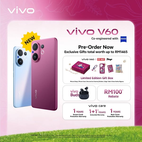 搜索关键词 Vivo Malaysia, Merdeka Promotion, Malaysia Day, V60 Pre-order, Mobile Phone Deals, Free Gifts, Special Offers, Smartphone Sales, Limited Time Offer, FacesAndFlavoursOfMY优势 Exclusive deals for Merdeka & Malaysia Day,Free gifts and special offers,Pre-order the new vivo V60 with exciting offers