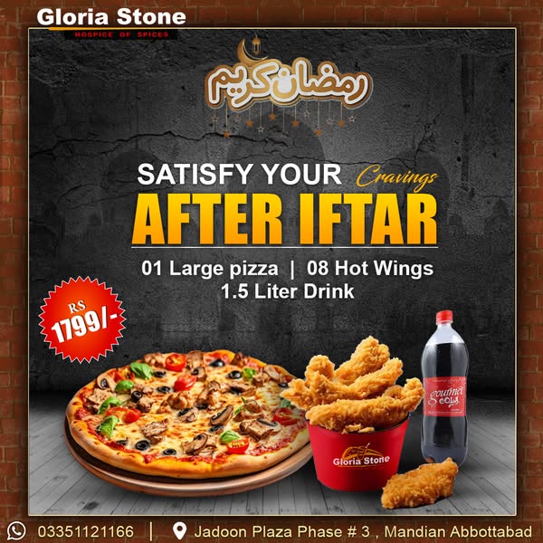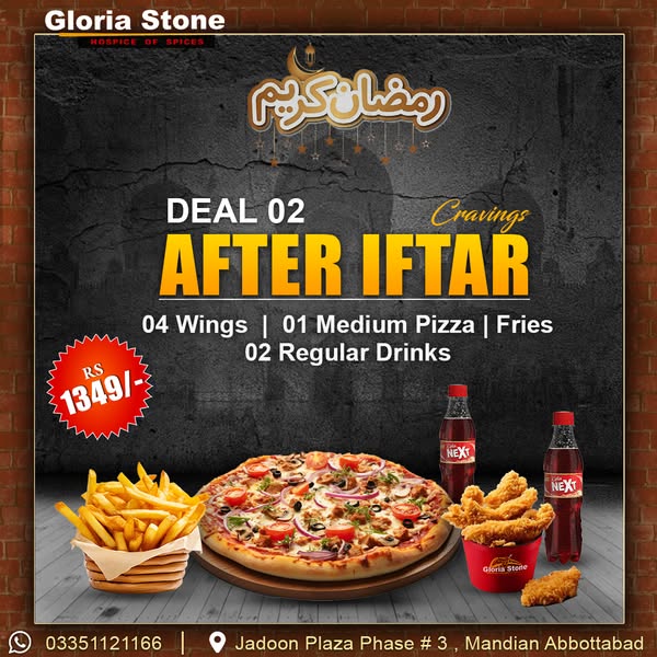 "Join us this Ramzan for a delightful Iftar spread, packed with your favorite fast-food treats and refreshing beverages. A meal made for sharing!"