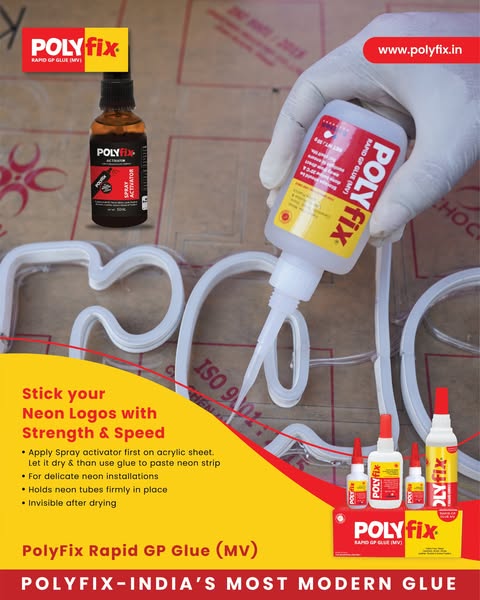 搜索关键词 PolyFix adhesive, signage adhesive, instant bond, acrylic display, flex sheets, clean finish, strong hold, signage makers, industrial adhesive, display solutions优势 Instant bond,Clean finish,Strong hold