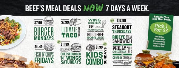 Beef's has DAILY VALUE MEALS EVERY DAY!