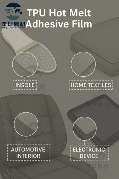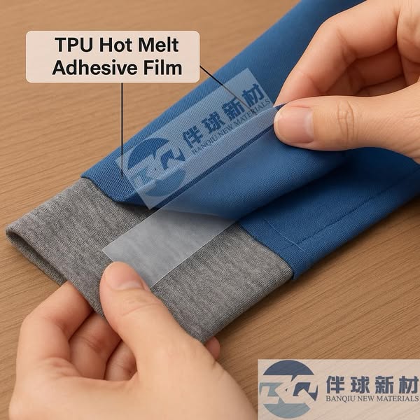 搜索关键词 hot melt adhesive film, hemming tape adhesive, eco-friendly adhesive, textile manufacturing, garment factory, lamination projects, strong adhesion, customizable adhesive, heat press application, Haining Banqiu优势 Strong Adhesion,Eco-Friendly & Non-Toxic,Soft, Flexible & Durable,Easy to Apply,Customizable Width & Thickness