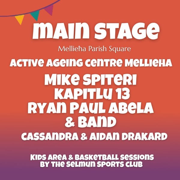 🎶 Live shows by popular singer Mike Spiteri, Kapitlu 13, and Ryan Paul Abela’s band featuring singers Cassandra Scerri and Aidan Drakard