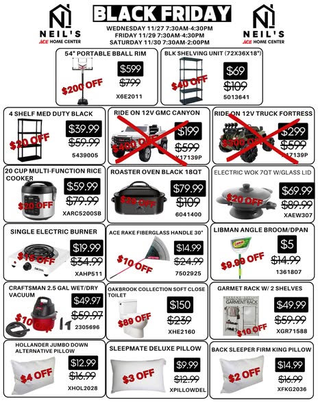 搜索关键词 NeilsAce Black Friday, Black Friday Sale, Raffle Winners, Discount Store, Limited Time Offer, Great Items, Open Now, Come In优势 Great discounts,Raffle opportunity,Limited-time offer