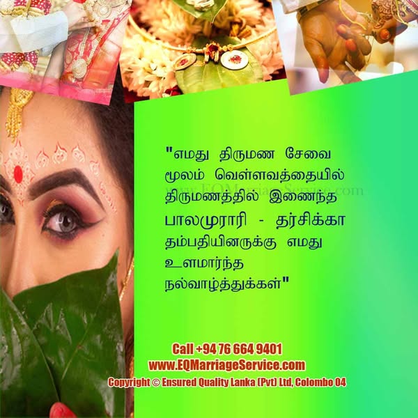 #TamilMatrimony #TamilMarriage #SriLankaMatrimony #TamilWeddings #ThirumanaSevai #TamilMatrimonial #MarriageProposals #EQMarriageService #Tamil #Jaffna #TamilWedding #JaffnaTamil #TamilMatrimonial #SriLankanGroom #SriLankanBride