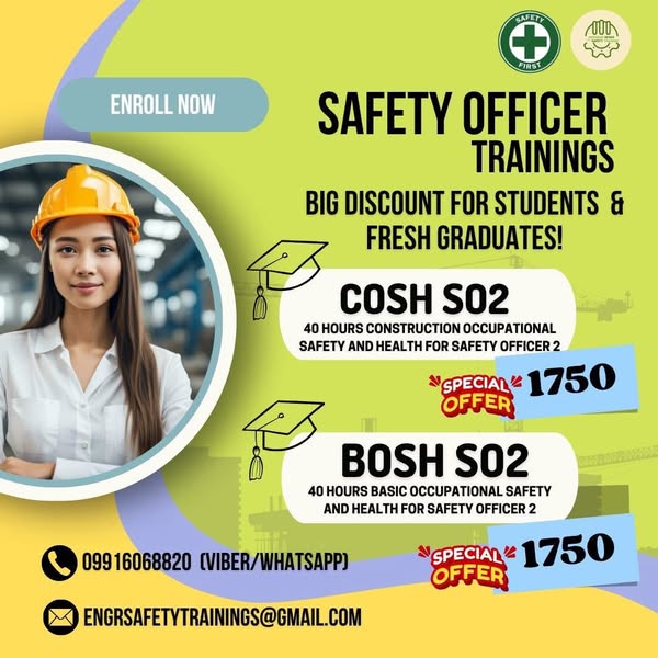 #safetyofficer #safetytrainings #safetytrainingsph #safetyofficer2 #beasafetyofficernow #doleaccreditedcenter #doletrainings #SO2 #SO1 #engineeringstudents #students #summerpromo #upskilltoday #trainings #SafetyFirst #Firstaidtraining #firstaider