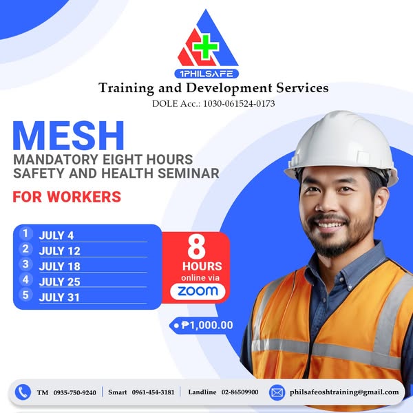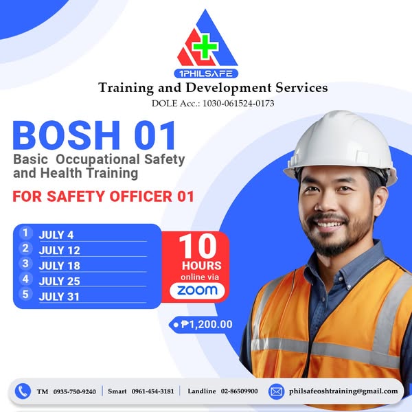 搜索关键词 safety officer training, cosh bosh training, occupational safety, health training, workplace safety, dole accredited training, safety officer certification, Philippines safety training, 1philsafe training, OSH training 2025优势 Certificate of Completion,Comprehensive Training Package,Free Delivery Nationwide,Trained with multi-skilled OSH Consultants and Practitioners