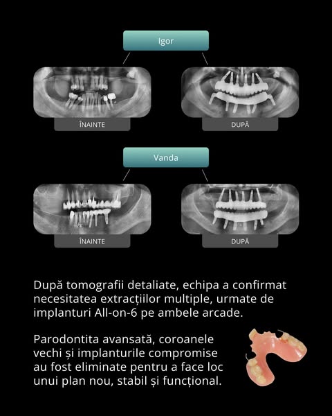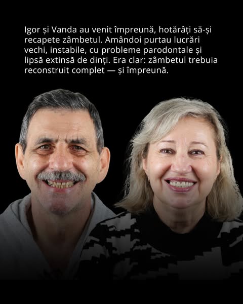 Igor și Vanda purtau lucrări vechi, instabile și se confruntau cu parodontită severă.