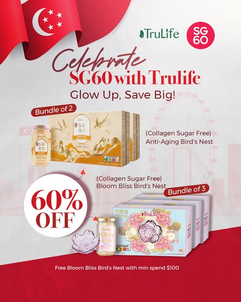 ur SG60 special is flying off the shelves! Get 60% off our anti-aging and Bloom Bliss bird's nest. Plus, a free set with every $100 spend. Shop now before it's gone!