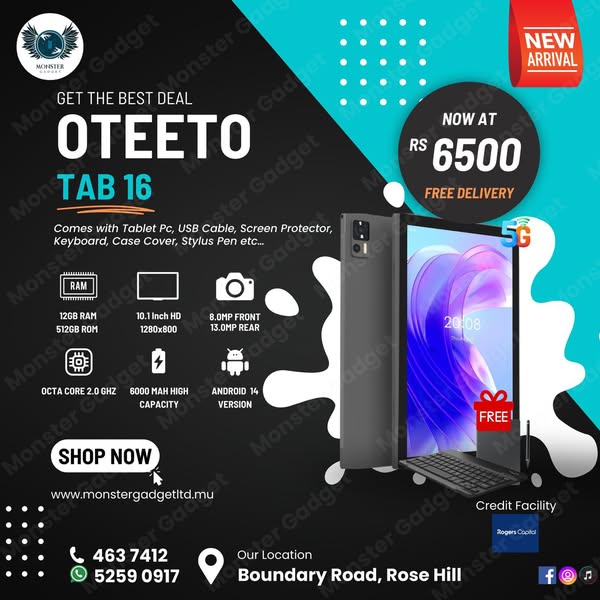 搜索关键词 Tablet for sale, Free delivery, Monster Gadget, Mauritius, WhatsApp order, Electronics device, portable tablet, buy tablet, tablet Boundary Rosehill, best tablet deal优势 Free Delivery,Island-wide Delivery,Convenient Ordering via WhatsApp