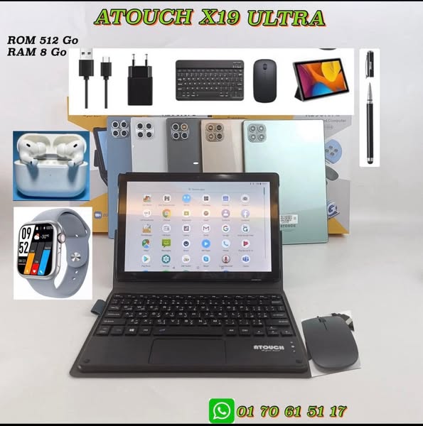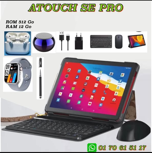 搜索关键词 Tablet Computer, Tablet Promotion, Cheap Tablet, 5G Tablet, Android Tablet, Tablet with Keyboard, Tablet with Accessories, ATOUCH Tablet, IDINO Tablet, Tablet Sale优势 Large internal memory (512GB),High RAM (16GB/12GB/8GB),Ultra-clear camera with flash,Includes accessories (Bluetooth keyboard, mouse, AirPods, Smartwatch, Stylus, Case, Screen Protector),Dual SIM support,5G Connectivity,Long battery life (10000mAh),Free Gift