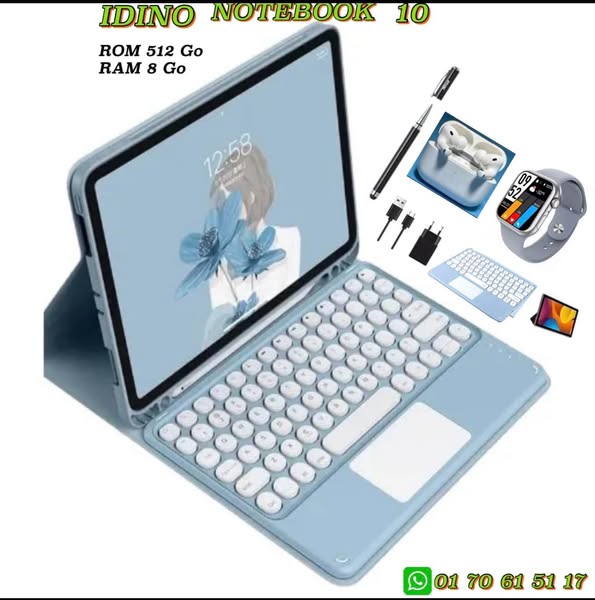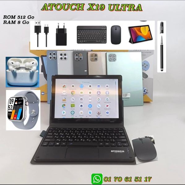 搜索关键词 Tablette Ordinateur, Android Tablet, 5G Tablet, Tablette pas cher, Tablet promotion, Bluetooth Keyboard, Smartwatch offer优势 Large internal memory (512 Go),High RAM (12 Go or 8 Go),Ultra-clear camera with flash,Bluetooth keyboard and mouse,Included accessories: Bluetooth headphones, smartwatch, stylus, chic case, anti-shock protection,Dual SIM support and 5G connectivity,Long battery life (10,000mAh),Pre-installed apps like Office, social media, and streaming services