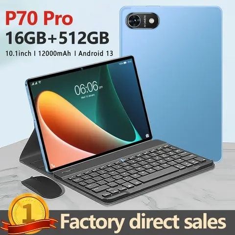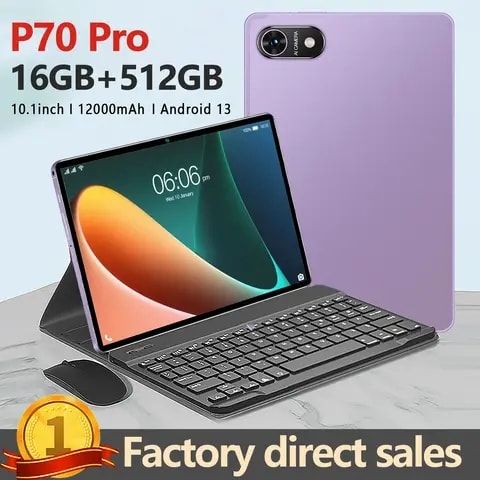 - Tablet P70pro: Ram 16GB + Rom512GB, internet4g-5G, 12000mah , កាន់ថ្មបានយូរ និងCamara HD ច្បាស់ អេក្រុង 10.1 inh, Work time: 8hours