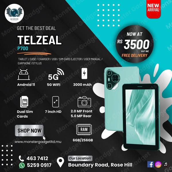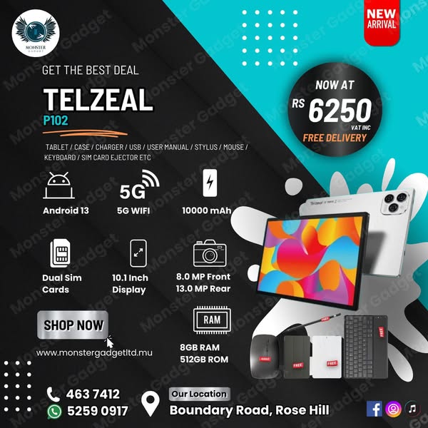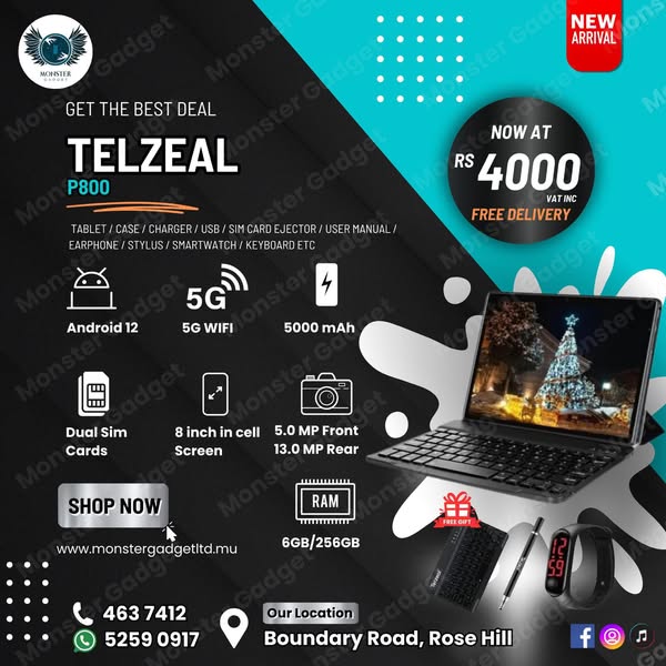 搜索关键词 tablet Mauritius, Monster Gadget, free delivery, WhatsApp order, electronics shop, Rosehill Mauritius, online tablet shop, affordable tablets, latest tablets, best tablet deals优势 Free delivery over the island,Easy WhatsApp ordering