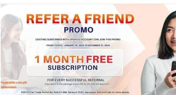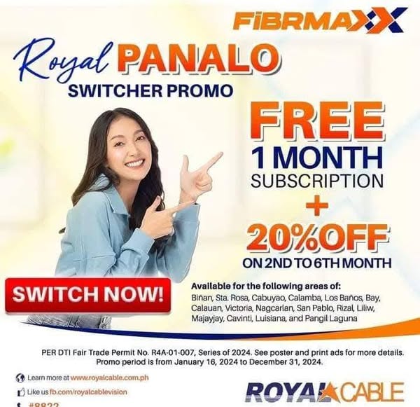 搜索关键词 Royal Cable Internet, free installation, discount internet service, referral promo, Philippines internet, affordable internet, fast internet, digital channels, switcher promotion, internet promotion优势 Free Installation,Free Digital Channels Access,Switcher Promo (Discounts),Referral Program