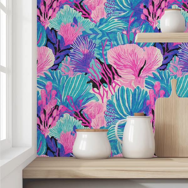 搜索关键词 tropical wallpaper, nursery wallpaper, playroom decor, pink green wallpaper, jungle vibes, home decor, kids room wallpaper, interior design, leaf pattern wallpaper, colorful wallpaper优势 Lush jungle vibes,Fun and fresh design,Suitable for playrooms and nurseries