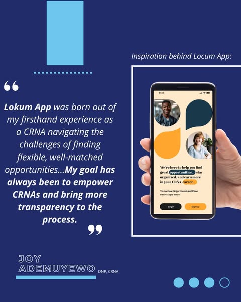 🌟 Member Monday Spotlight: Joy Ademuyewo, DNP, CRNA 🌟 Meet Joy, a CRNA and the visionary CEO behind Lokum App—a platform that’s revolutionizing the way CRNAs connect with opportunities! She was inspired to become a CRNA after working alongside the talented CRNAs in the ICU, and she’s never looked back.