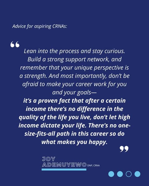 Thank you, Joy, for not only paving the way for CRNAs to take control of their careers but also for showing us all the power of doing what you love!