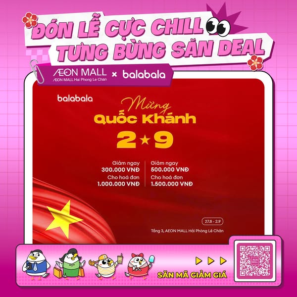 Mừng đại lễ 2/9 tưng bừng, AEON MALL Hải Phòng Lê Chân thả deal “bung xõa” với loạt ưu đãi hấp dẫn cho bạn và gia đình: