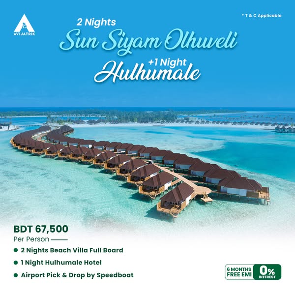 搜索关键词 Maldives vacation packages, luxury travel, all inclusive resorts, Avijatrik travel, beach villa holiday, honeymoon destinations, affordable luxury travel, Maldives holiday deals, 0% EMI travel, Maldives escape优势 Luxury resorts included,All-inclusive and full board options,Speedboat transfers and airport pick & drop,0% interest EMI for 6 months,Secure online payment gateway