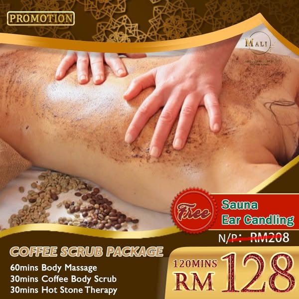 Urutan Seluruh Badan 1 Jam + Batu Panas 30 Minit + Skrub Kopi 30 Minit