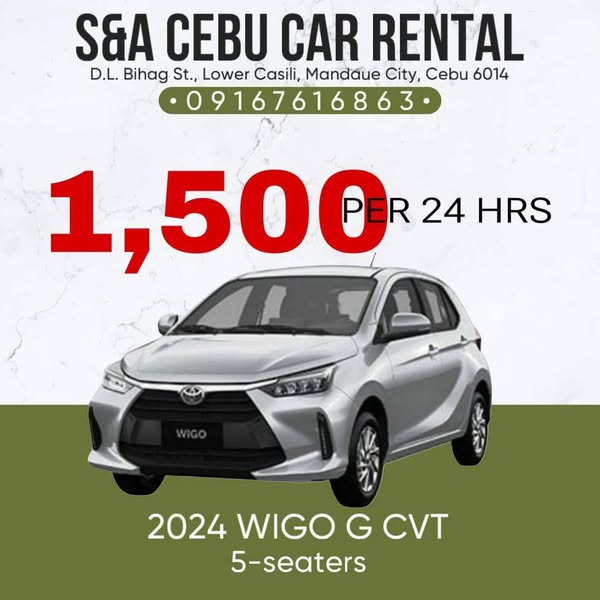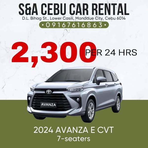 搜索关键词 cebu car rental, car rental services, self drive cebu, family trips, weekend getaway, toyota rental, affordable car rental, weekly car rental, monthly car rental, reliable car rental优势 No cash bond,Self-drive or with driver options,Toyota Casa Maintained units,Great deals for weekly/monthly rentals,Flexible rental hours,Pick-up delivery,Cashless transactions