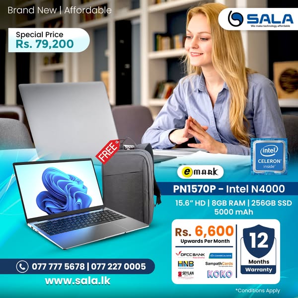 搜索关键词 Emark Laptops, Laptop Sri Lanka, Buy Laptops Online, Installment Laptop, Affordable Notebooks, Sala Enterprises, Tech Upgrade, Notebook Lovers, Performance Notebooks, Islandwide Delivery优势 Wide range of laptops,Installment payment option,Island-wide delivery
