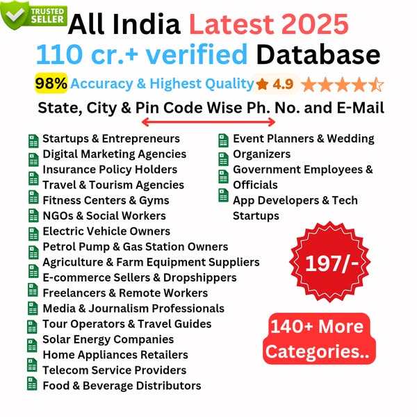 Are you looking to expand your business across India? Look no further! Our All India Database is a comprehensive collection of contacts from various industries, including companies, students, teachers, hospitals, doctors, and more. Get access to our comprehensive PAN India Database, enriched with B2B and B2C contacts, and phone numbers to boost your sales and marketing efforts.