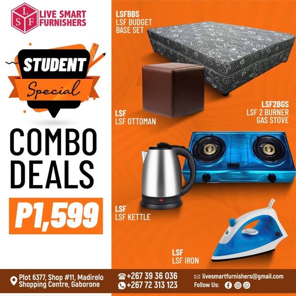 搜索关键词 combo deals, student specials, savings Botswana, shopping center, gaborone deals, budget wins, discount deals, limited time offer, affordable prices, student discounts优势 Savings,Affordable,Targeted at students