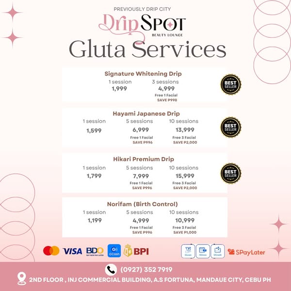 搜索关键词 Gluta Drip, Free Facial, Affordable Beauty, Beauty Lounge, Skincare Treatment, Mandaue City, Cebu, Glow Up Season, Drip Spot, Aesthetic Clinic优势 Affordable price,Free facial included,Multiple payment options