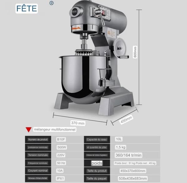 Mélangeur multifonction avec 3 têtes de rechange (capacité 10L, dimensions 420×470×630 mm) – 45 000 XPF