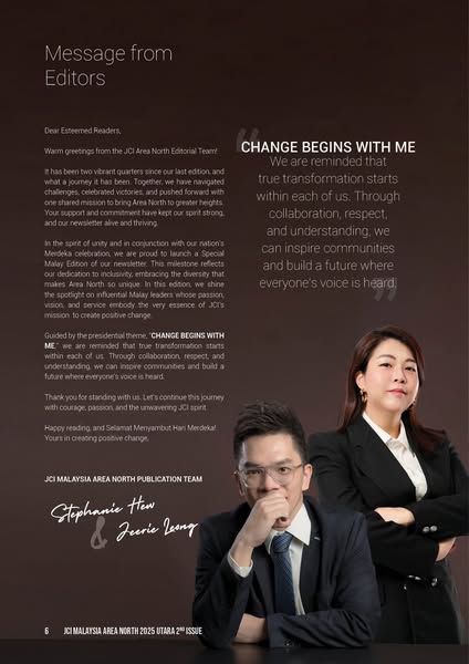 搜索关键词 JCI Malaysia, Area North, Community Service, Youth Leadership, Community Upliftment, Social Impact, Volunteer Opportunities, Empowerment Programs, Anniversary Celebration, JCI 110 Years优势 Highlights impactful community initiatives,Showcases member achievements,Inspires youth leadership and unity,Promotes the JCI spirit of purpose and empowerment